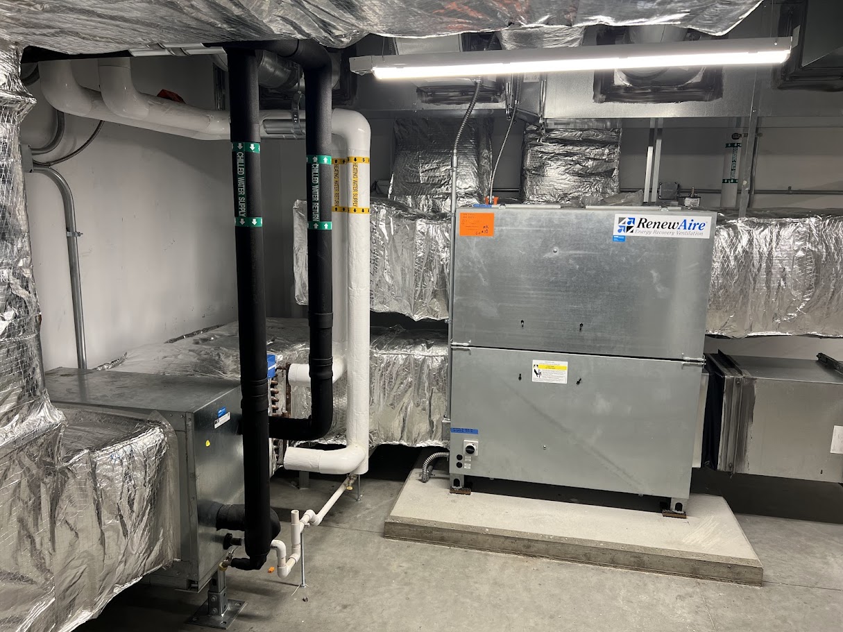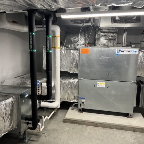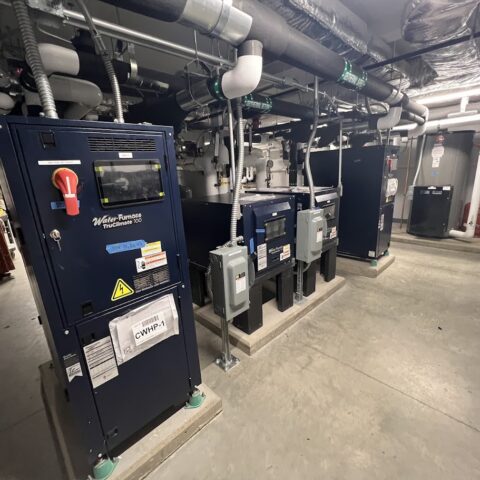 Kimball Union Academy, a prestigious private boarding school founded in 1813, embarked on constructing two new high-performance, energy-efficient dormitory buildings designed to be Net-Zero Ready. Our team developed the design for the geothermal HVAC system and provided full mechanical services including Revit 3D design, plumbing, HVAC installation, shop fabrication, insulation, and service. We also coordinated with specialized subcontractors for geothermal drilling and looping as well as automatic temperature controls.