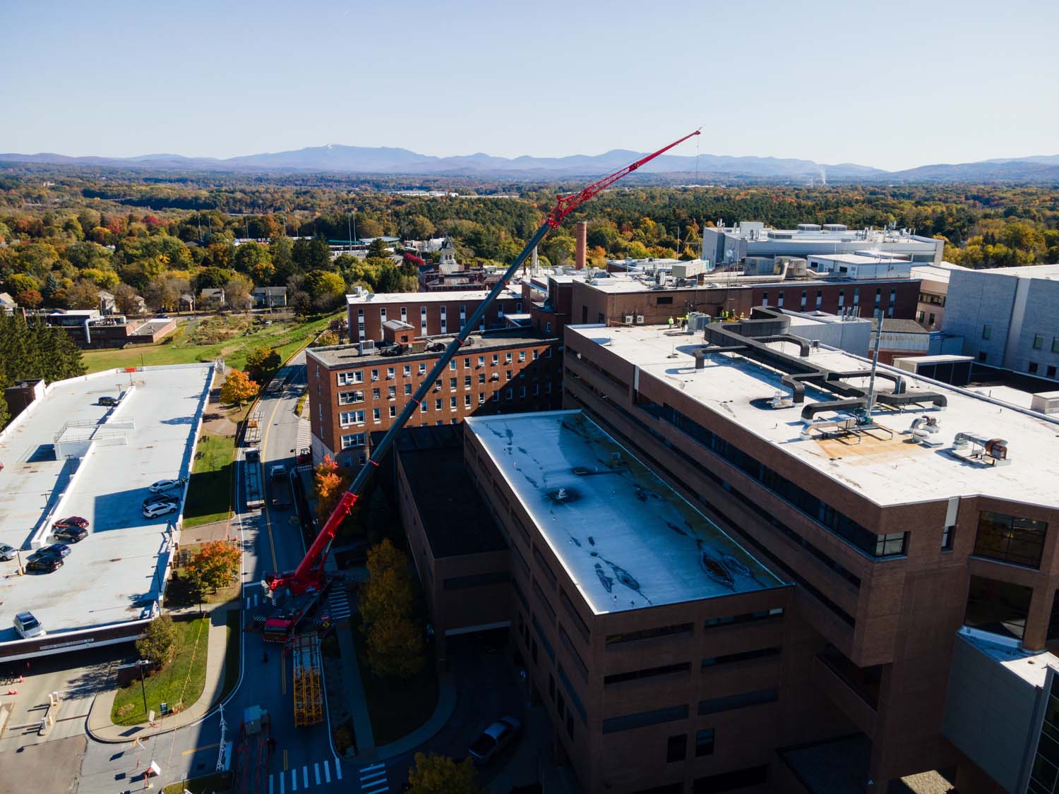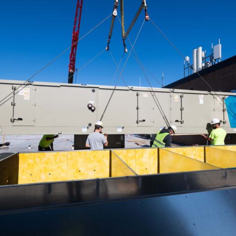 The University of Vermont Medical Center (UVMMC), a leading healthcare provider serving over one million people in Vermont and Northern New York, needed to replace the aging HVAC system and controls for their Neonatal Intensive Care Unit (NICU), located within the UVM Children’s Hospital. This critical project began as a design-build effort focused on improving the NICU’s HVAC system, but quickly expanded to include replacing aging ductwork, upgrading air filtration, converting pneumatic controls to DDC systems, and enhancing plumbing and medical gas systems. A significant challenge was completing this comprehensive overhaul without disrupting the NICU’s daily operations and the care of its critically ill infant patients. This required meticulous planning, close coordination with all trades and hospital staff, and the implementation of temporary air systems to maintain precise temperature and pressure levels within the busy unit. The project’s success relied heavily on the expertise and support of our engineering, operations, and project management teams, along with subcontractors specializing in temperature controls, testing and balancing, crane and rigging, and medical gas certifications.